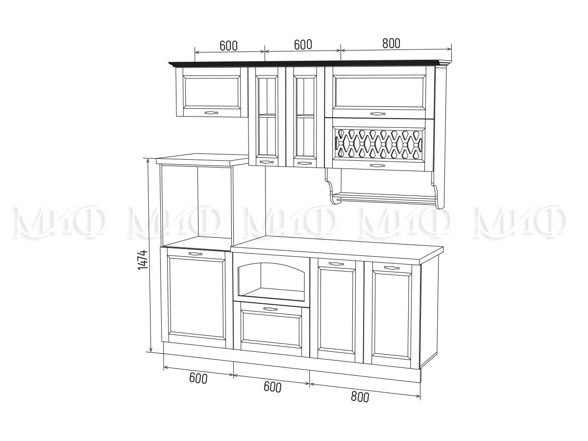 • Глубина шкафов: Верхние 300 мм/Нижние 600 мм/Глубина столешницы 600 мм
