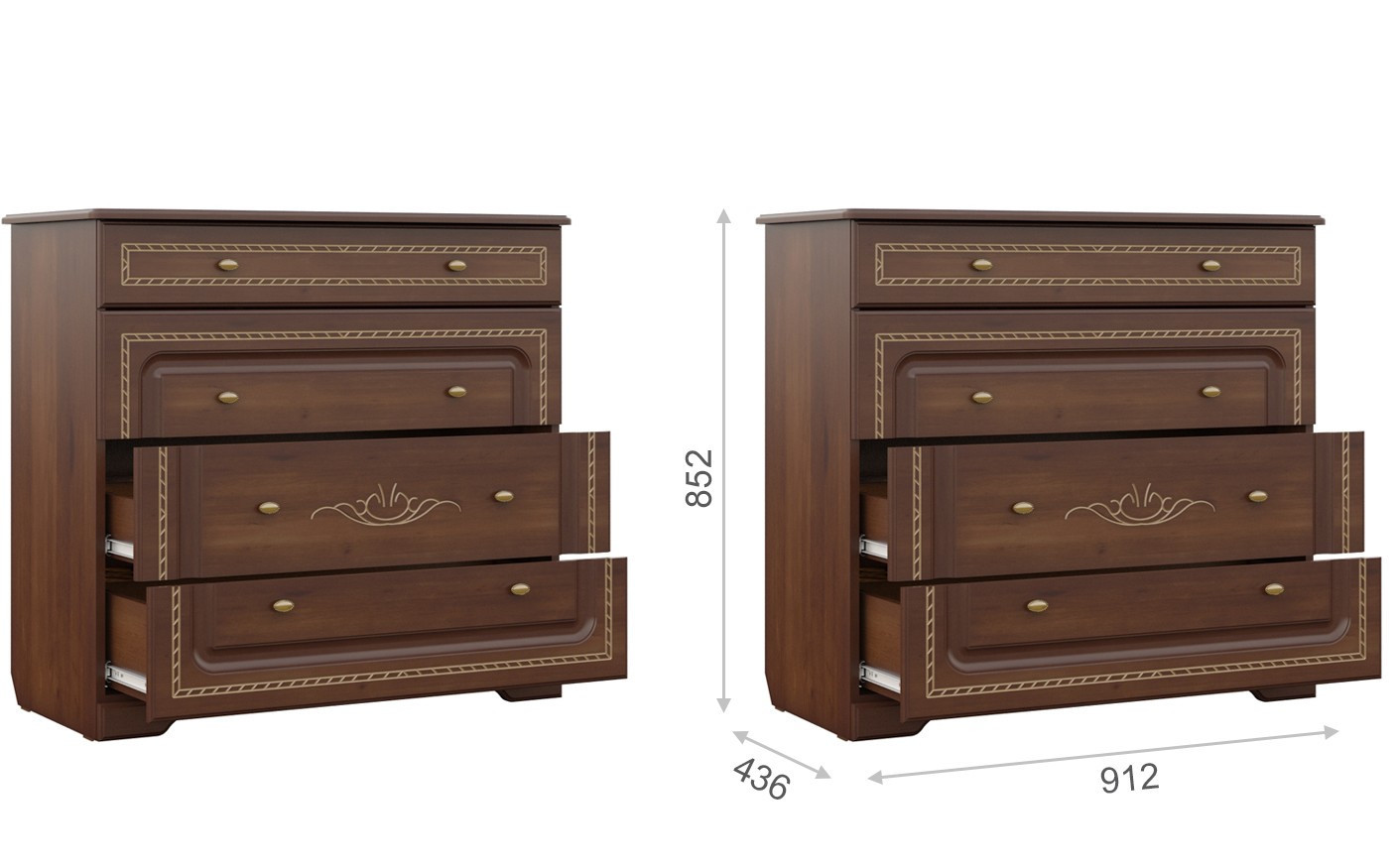 • Комод: Ширина 912 мм х Глубина 436 мм x Высота 852 мм