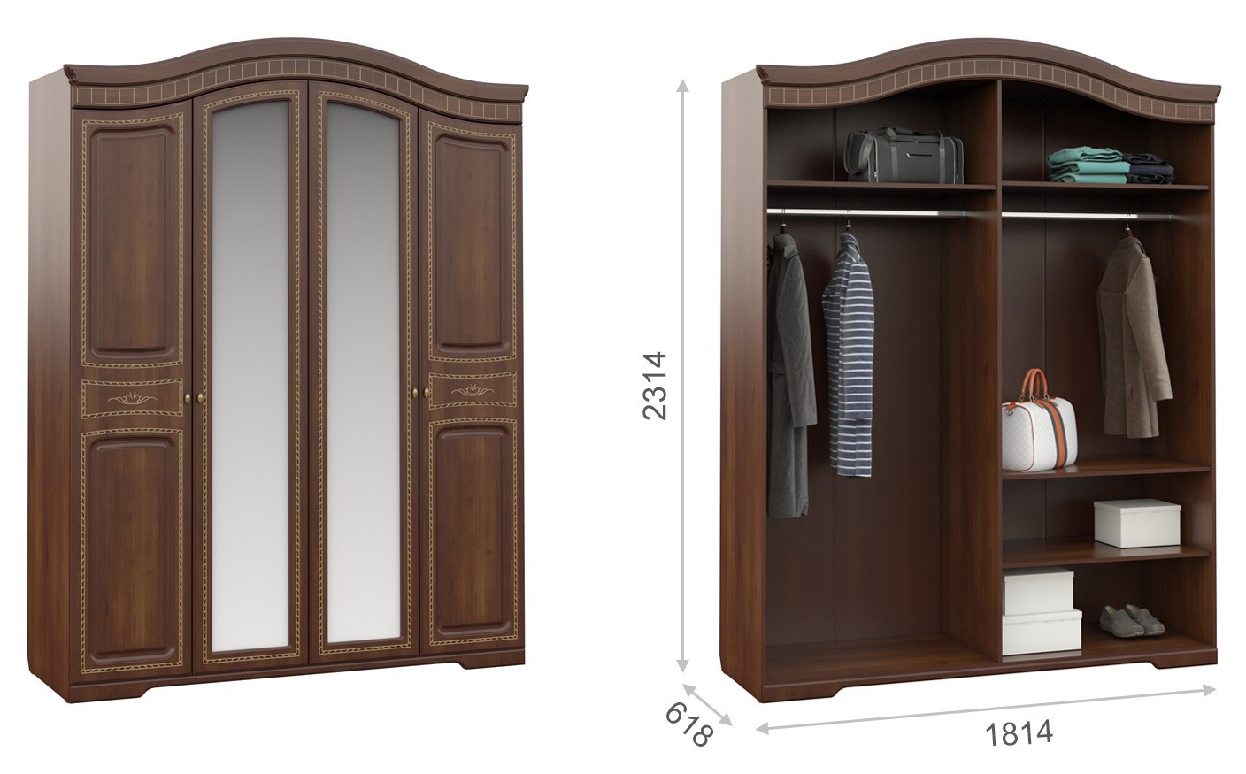 • Шкаф 4-х Створчатый: Ширина 1814 мм х Глубина 618 мм x Высота 2314 мм