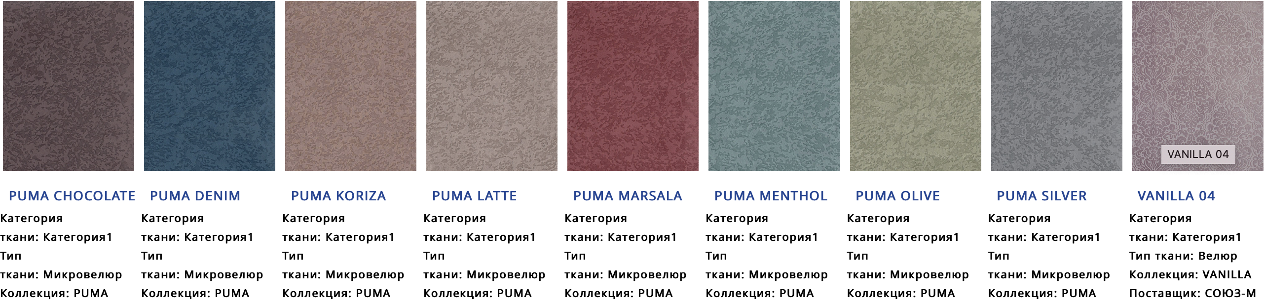 • Цвет: Ткань на выбор