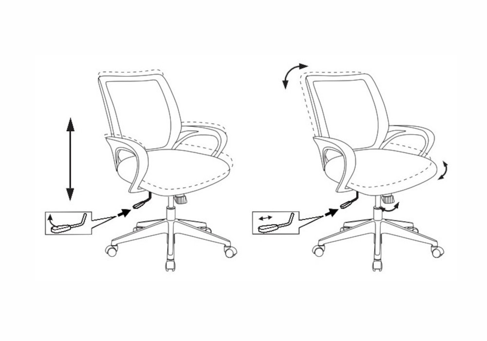 Диаметр колес - 5 см. Высота сиденья - 55 см. Высота с подлокотниками - 74 см. Ширина сиденья - 48 см. Глубина сиденья - 44 см. Спинка отдельная от сиденья. Крестовина пластиковая. Механизм качания с регулировкой под вес и возможностью фиксации в вертикальном положении.