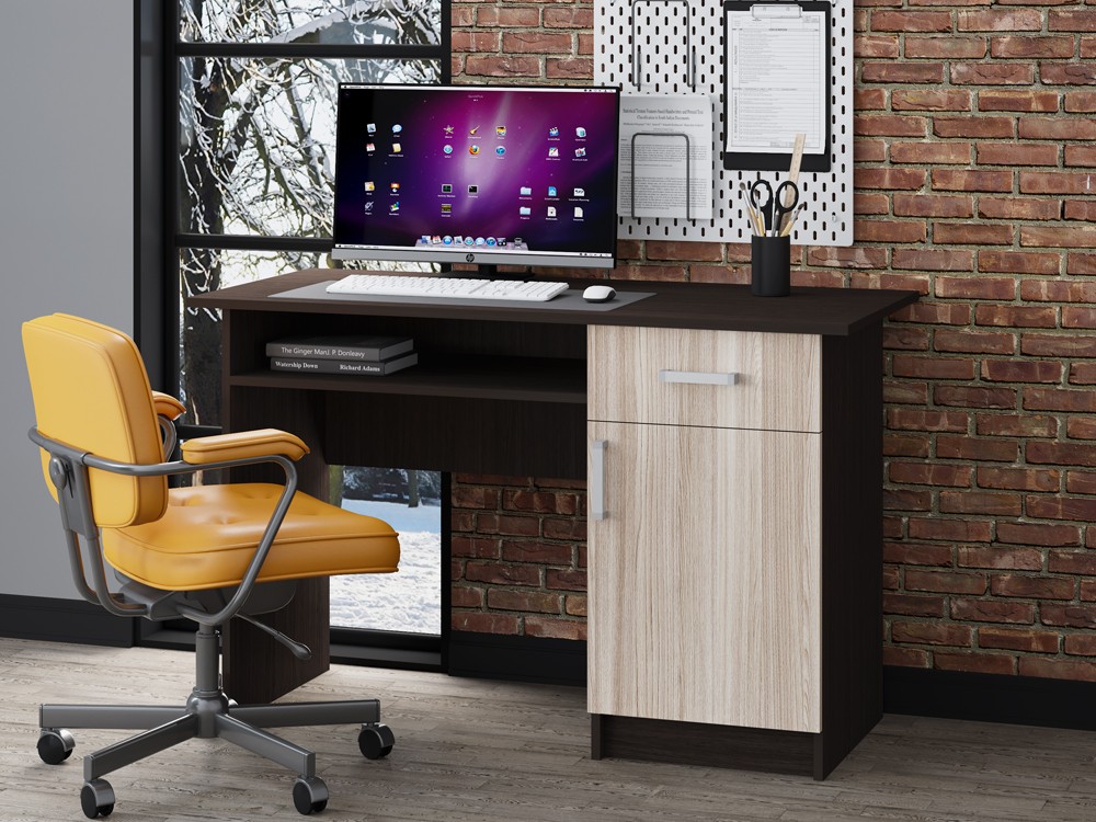 Сейчас редко встретишь обычный письменный стол в квартире. Даже детям родители стараются покупать не классический стол для письма, а современные аналоги футуристического дизайна. На самом деле при правильном выборе стола для письма классического дизайна вы не только приобразите комнату, в которой он будет стоять, но и получите модель, которая не один год будет выполнять свое предназначение. Письменный стол ПС-01 это классический вариант прямоугольного деревянного стола, изготавливаемого в трёх расцветках: орех855, венге и белфорт. Вы можете выбрать письменный стол ПС- 01 более подходящего к вашему интерьеру цвета. Письменный стол ПС-01 подойдет и младшему школьнику, и подростку и взрослому, надо лишь правильно подобрать каждому стул. Письменный стол ПС-01 имеет выкатной ящик для мелочей и тумбу с двумя полками, а также полку под столешницей, всё это позволить организовать хранение письменных принадлежностей в порядке.